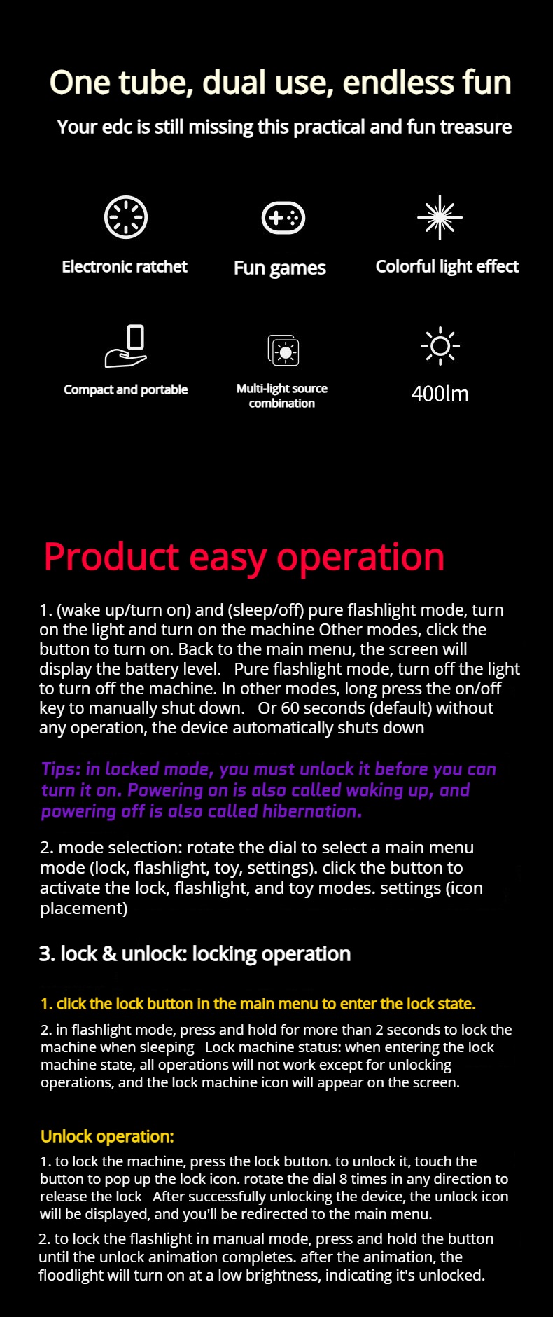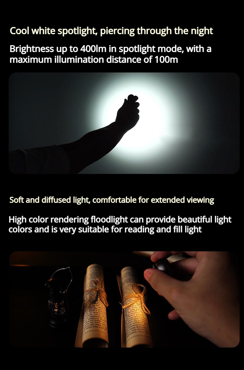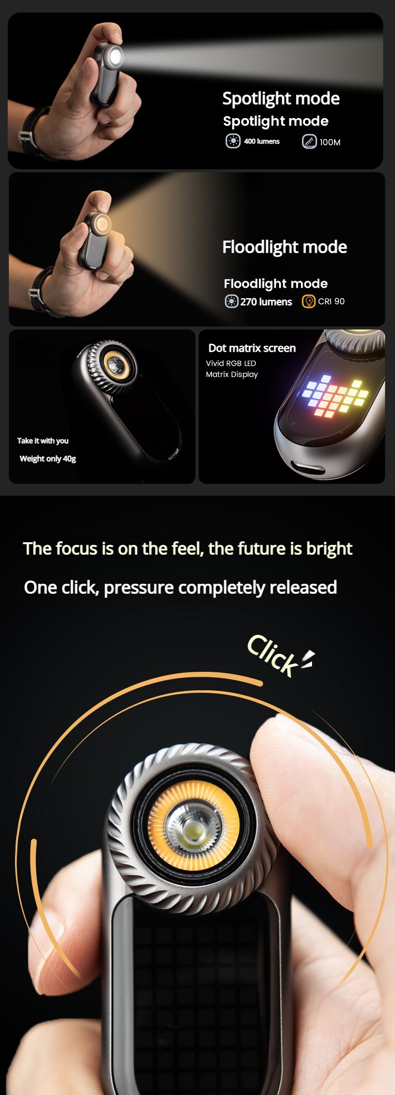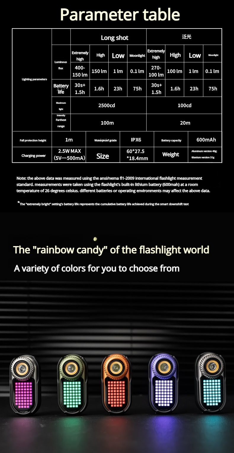 RGB Pixel Display丨Fidget Dial丨Dual Light Sources丨Stepless Dimming丨400LM丨CRI 90丨EDC Flashlight